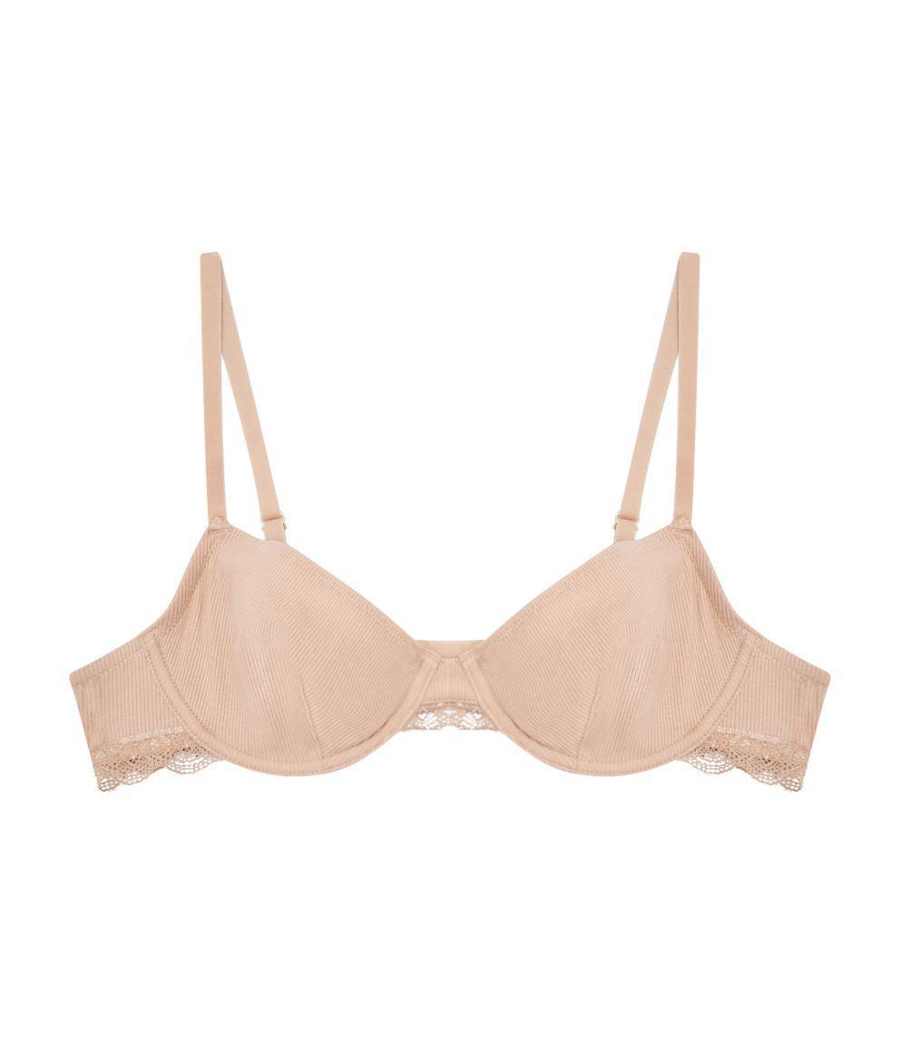 Reggiseno in cotone a costine, modello balconcino con ferretto senza coppe. Spalline regolabili e chiusura con due gancetti regolabili su tre larghezze.