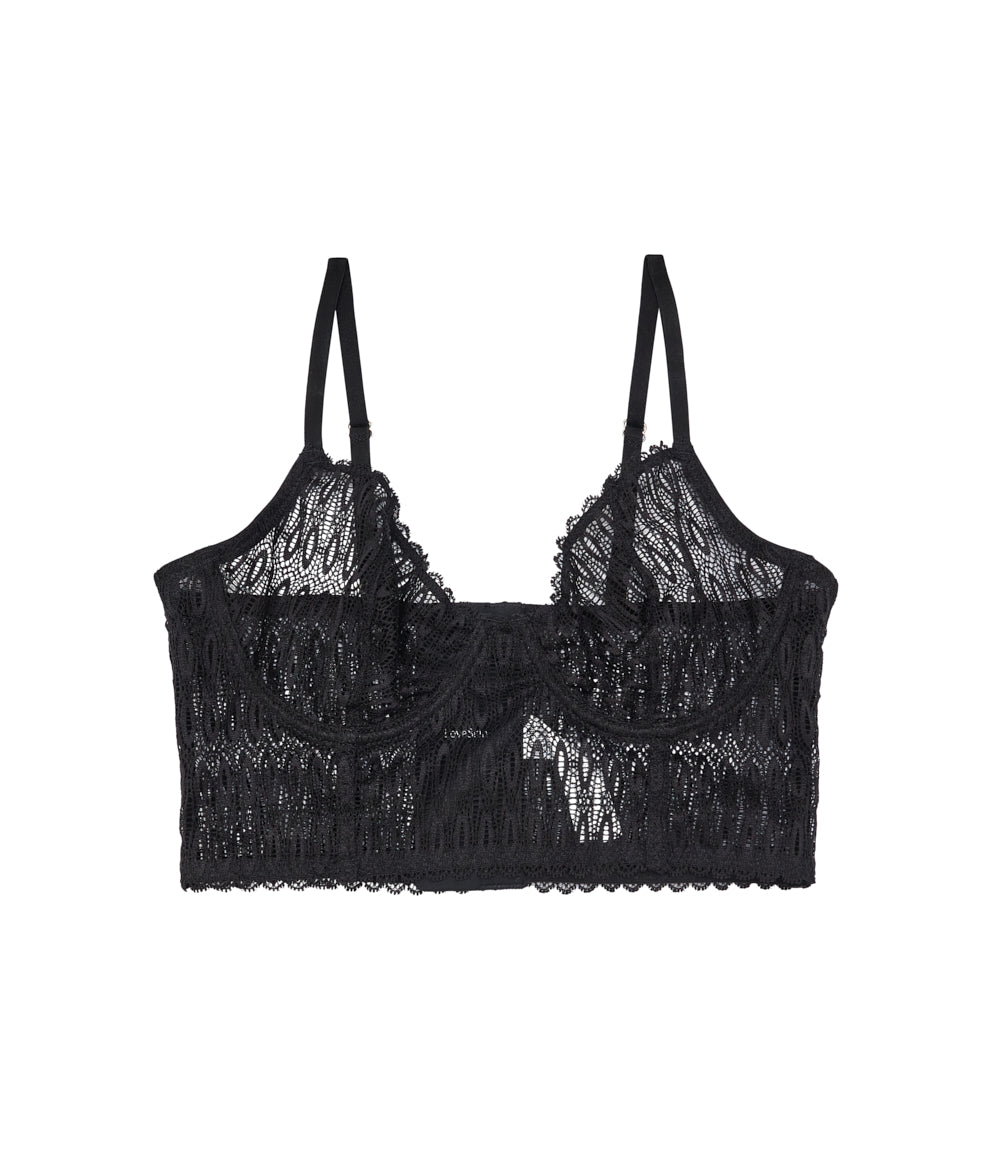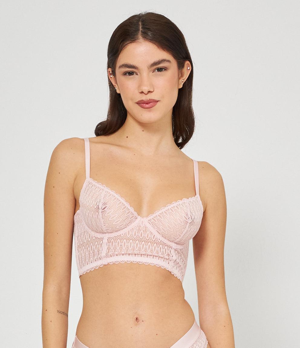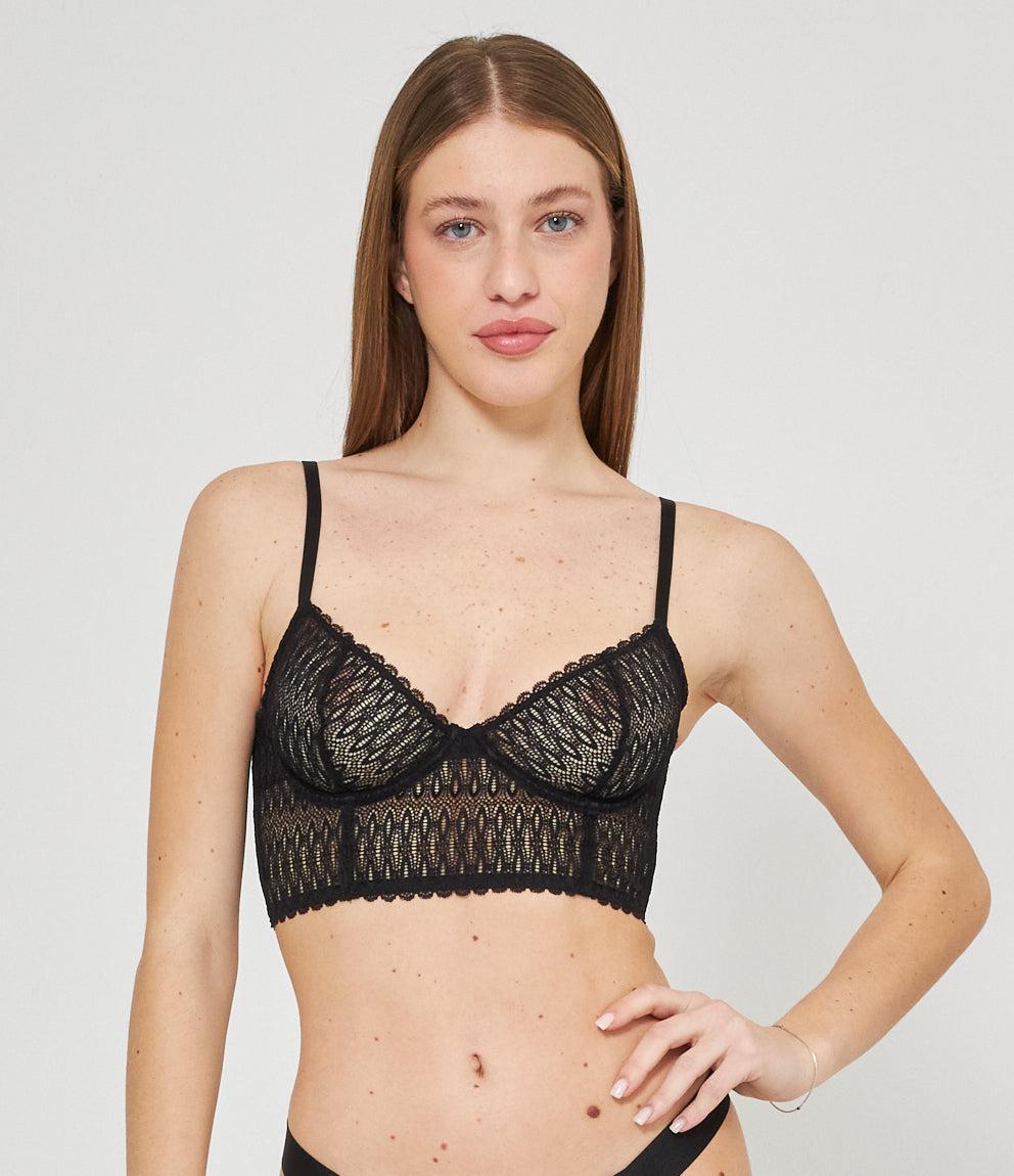 Reggiseno bralette con ricami e trasparente, spalline sottili regolabili e chiusura con gancetti.