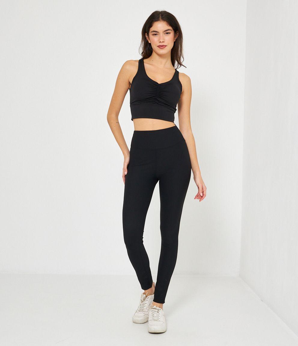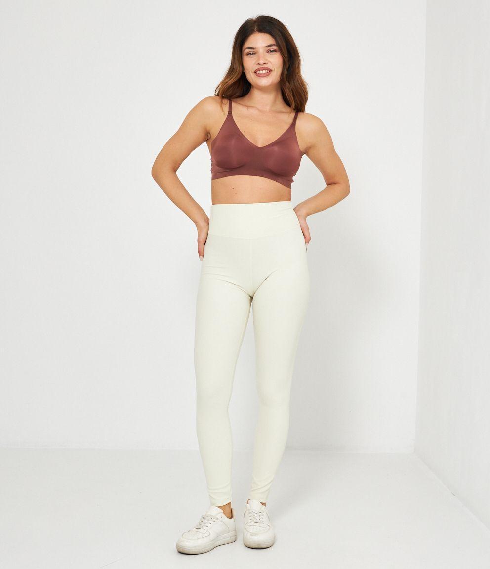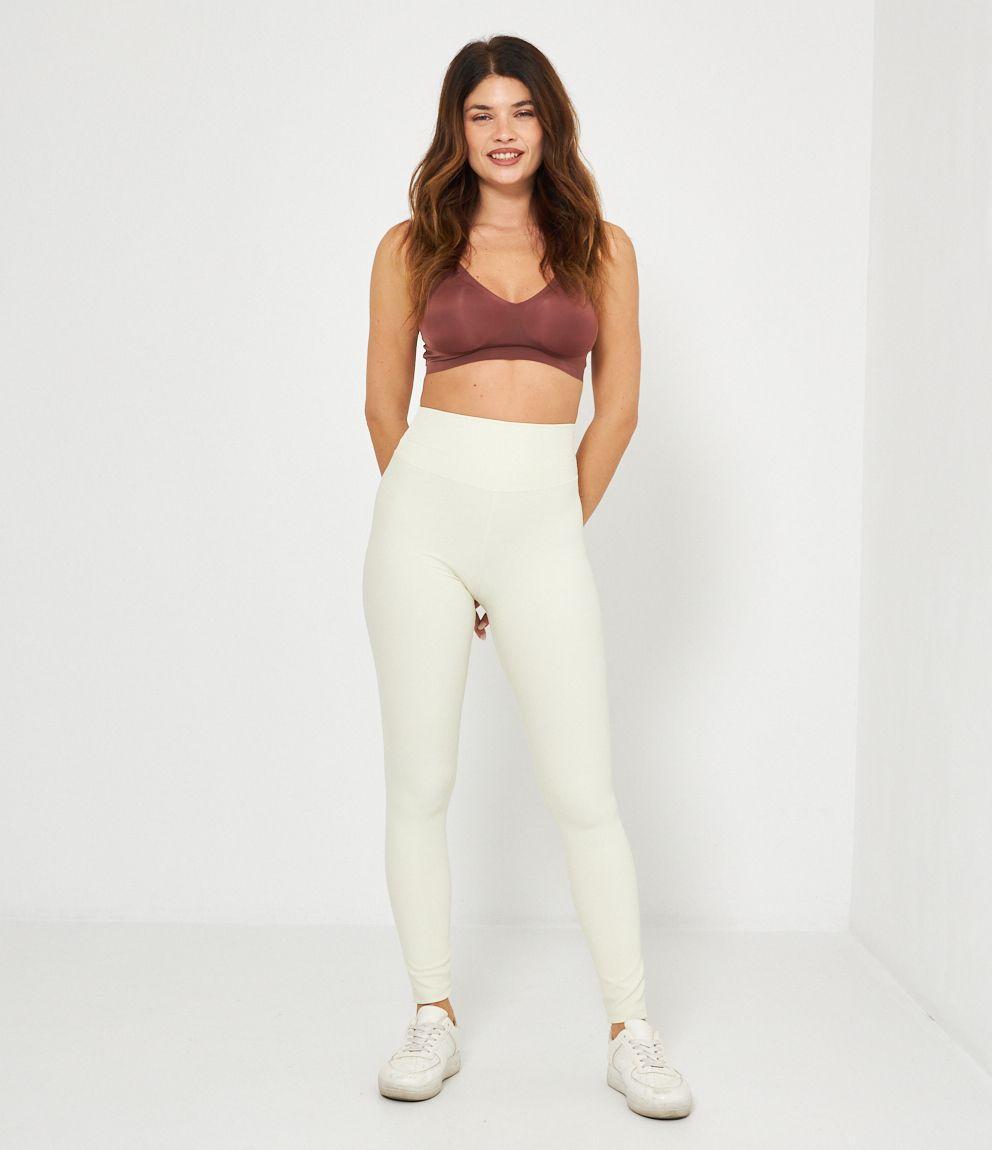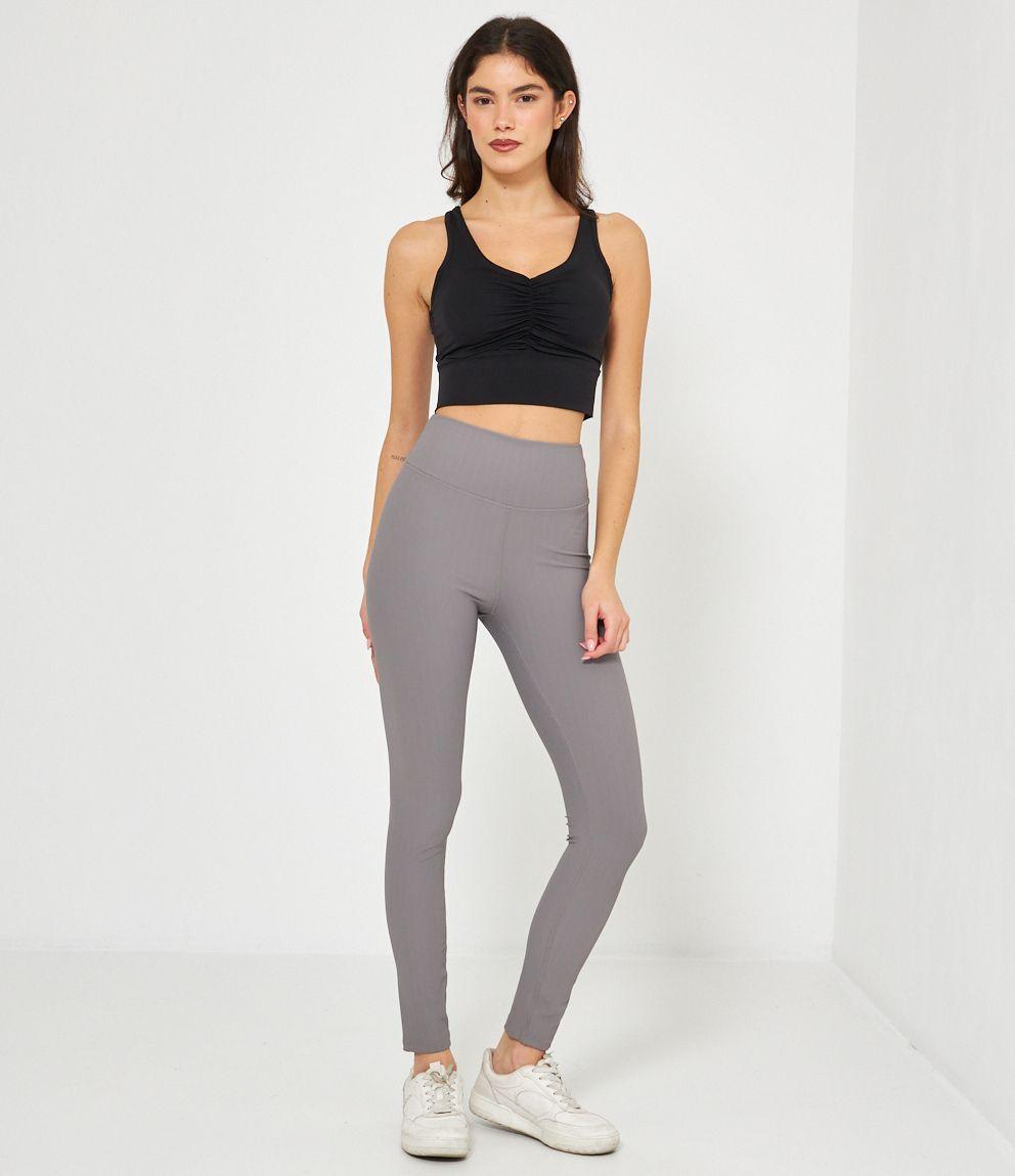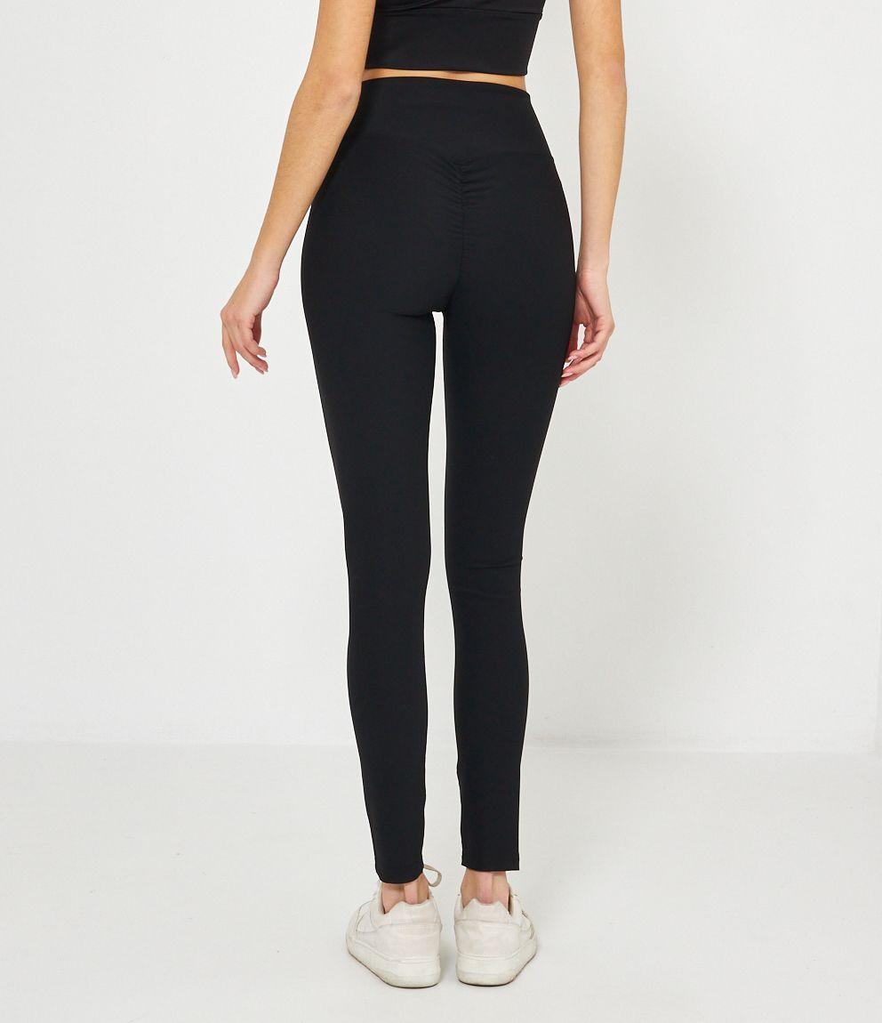 Leggings a costine a vita alta con arriccio sul retro.