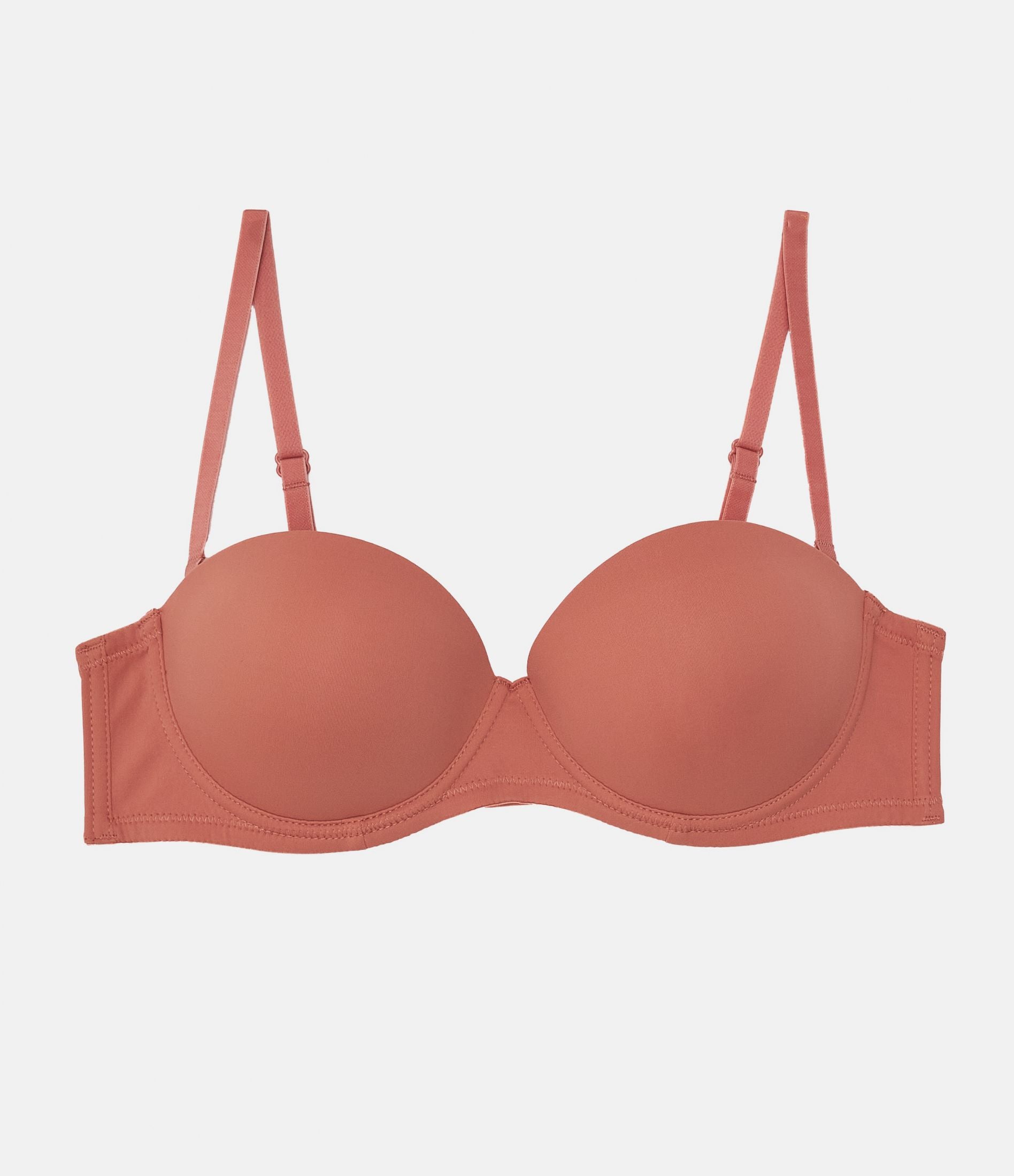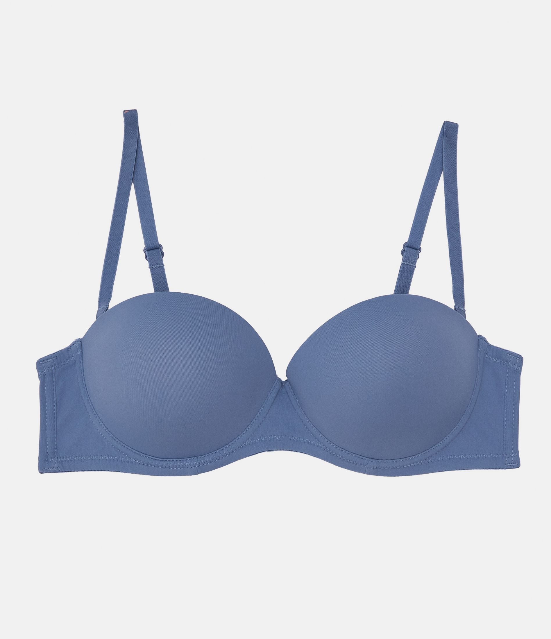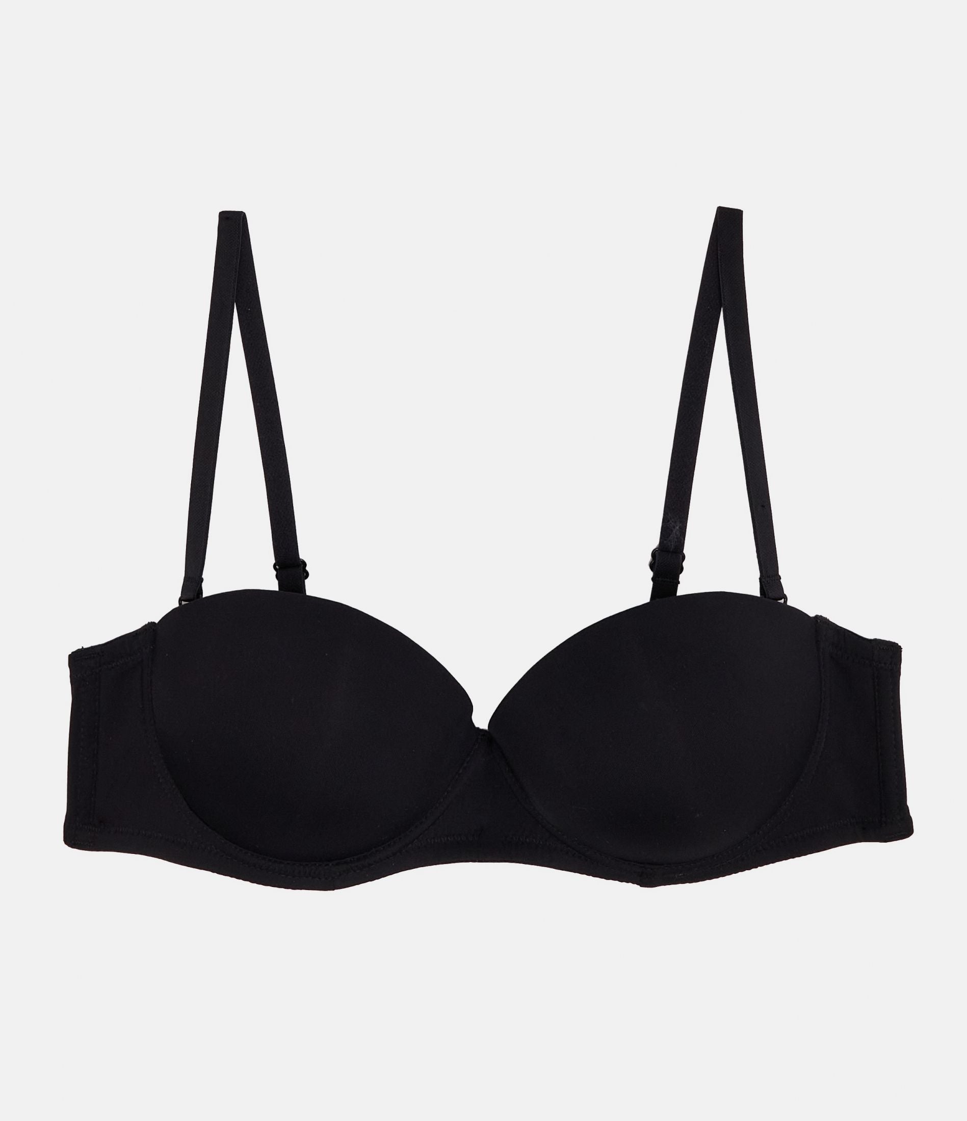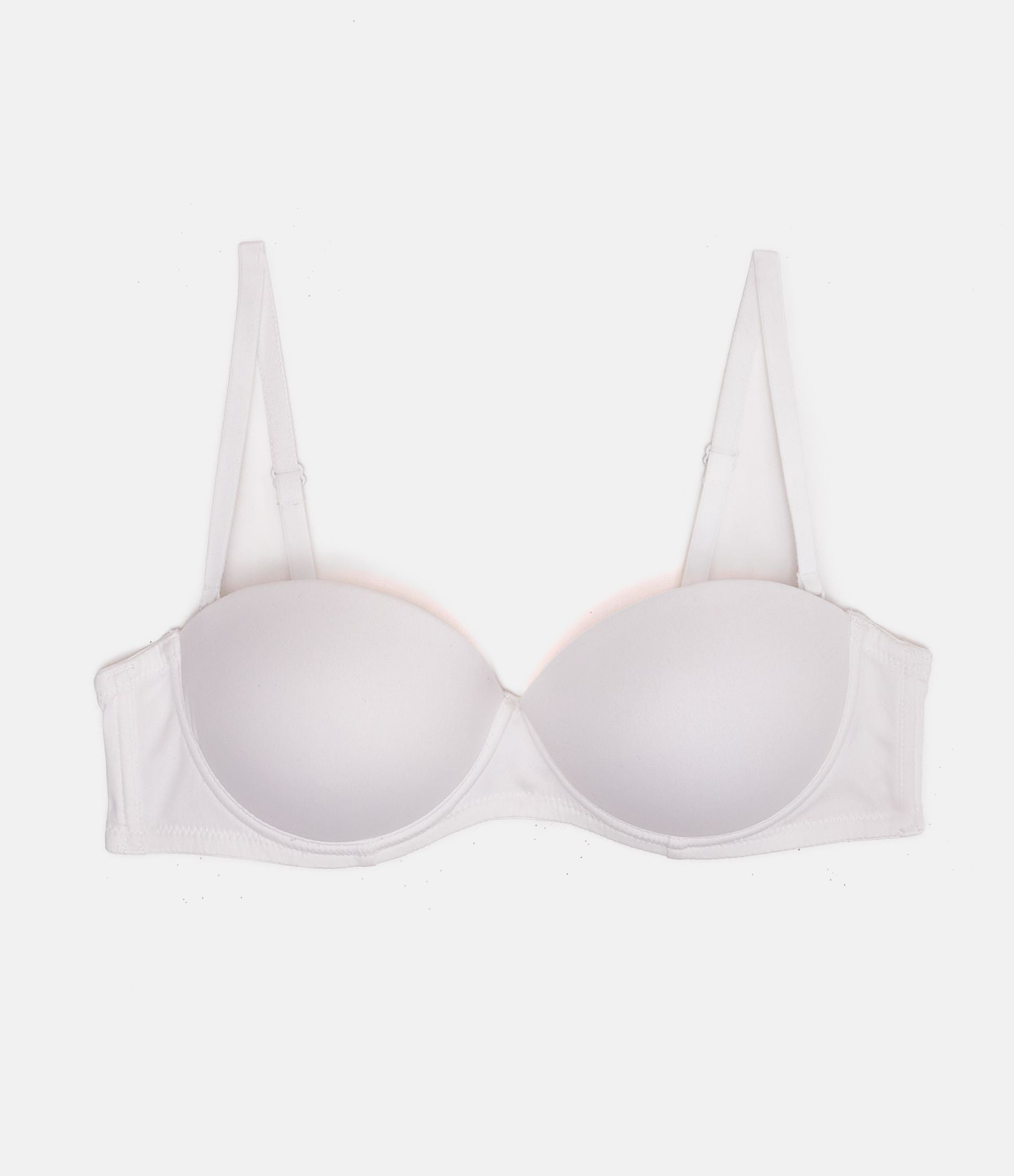 Reggiseno modello fascia imbottita con spalline regolabili e rimovibili, chiusura con due gancetti regolabili in tre larghezze.