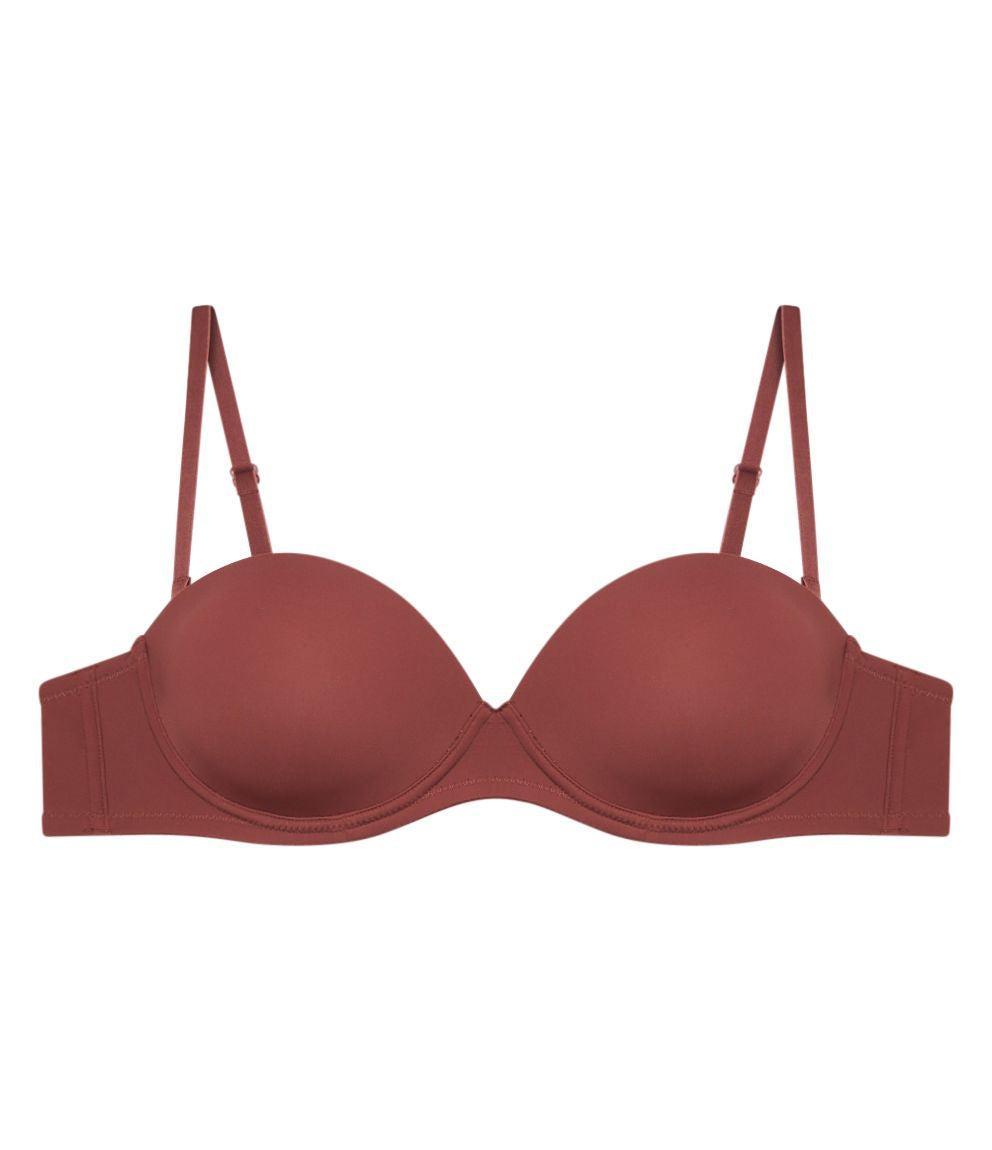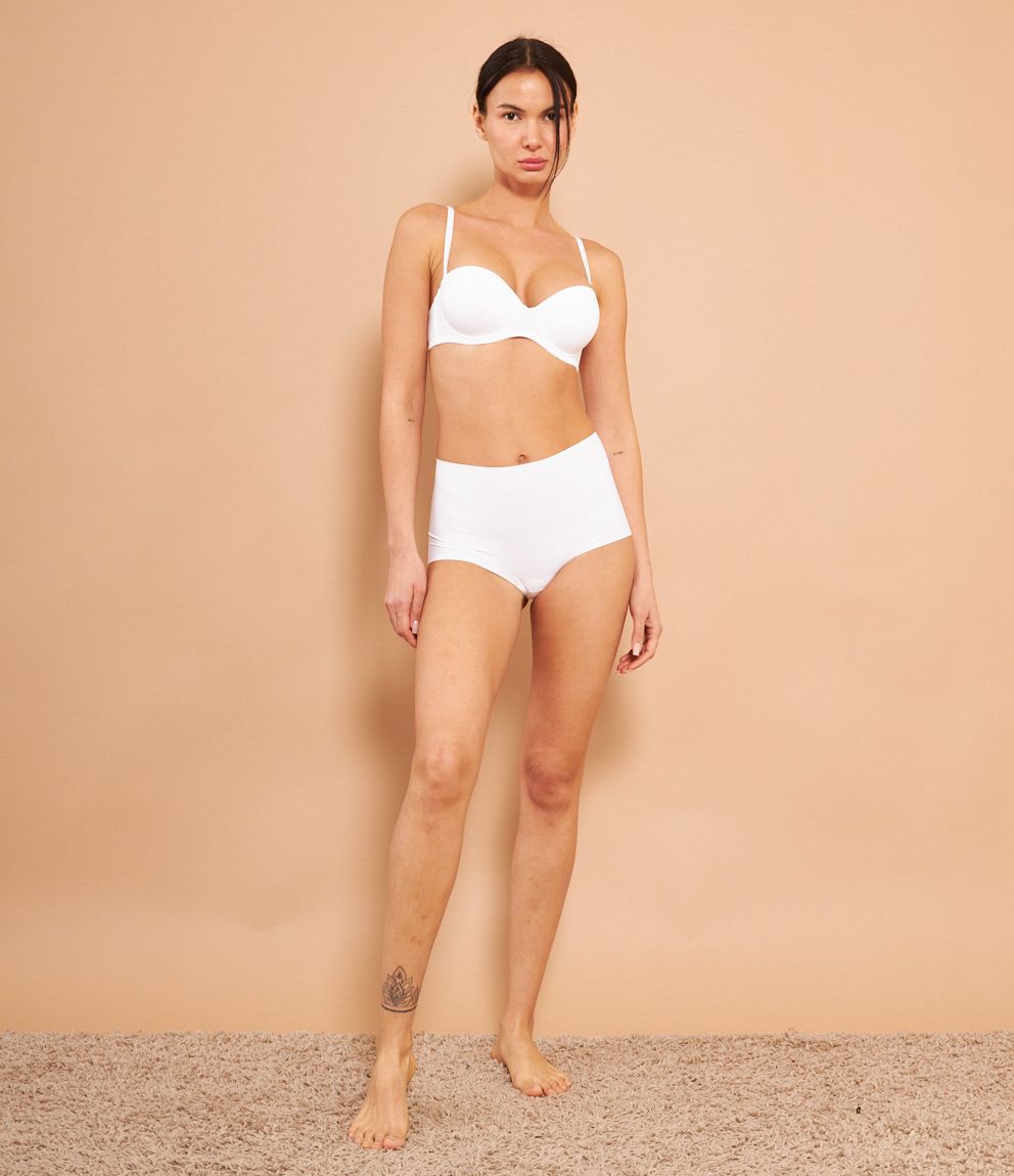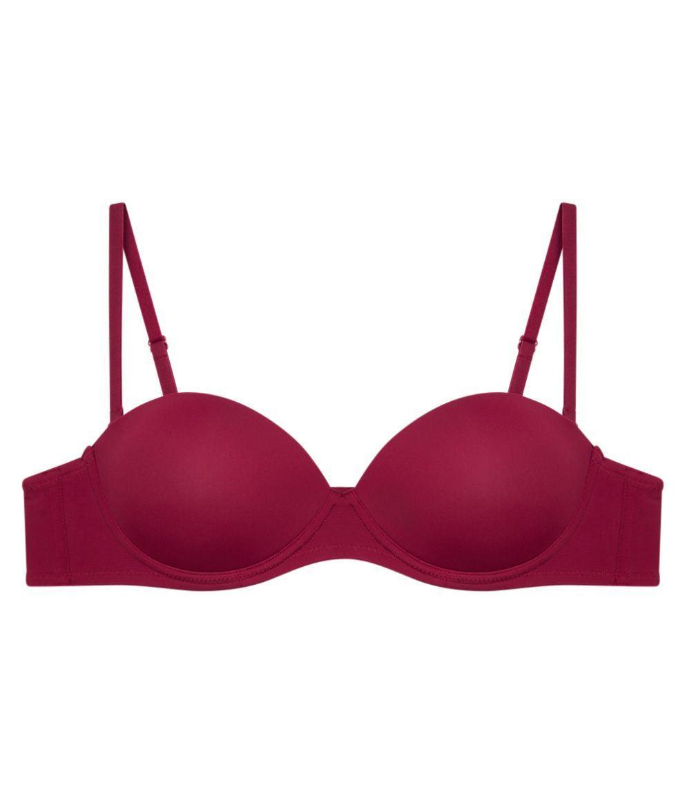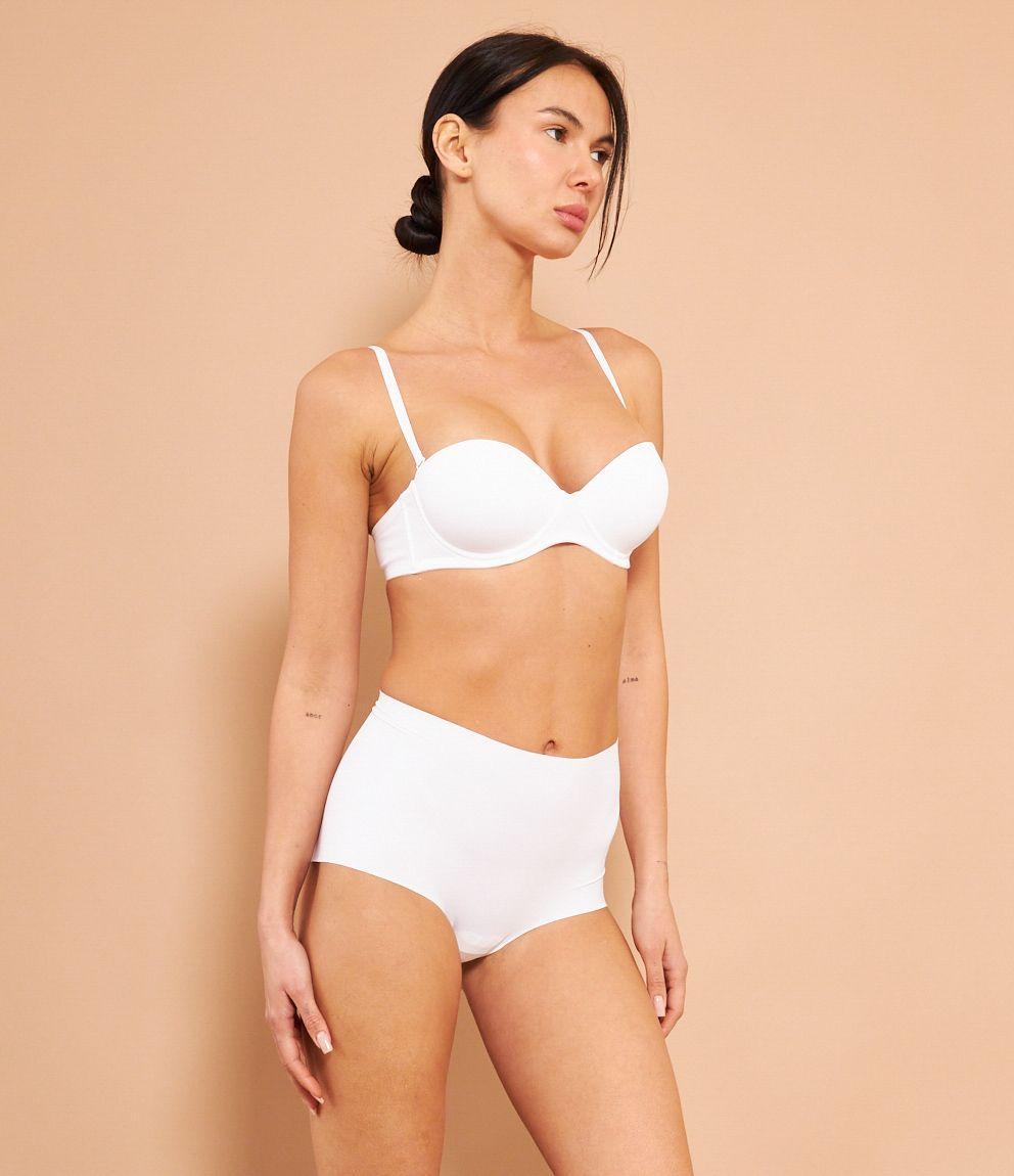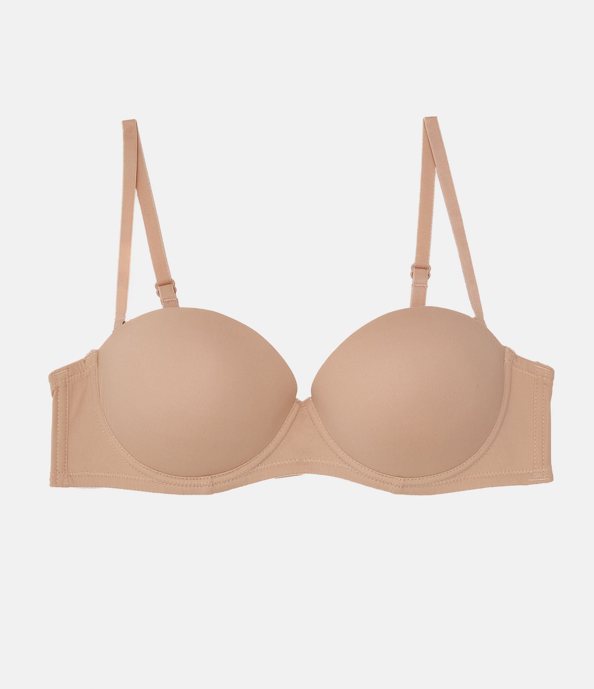 Reggiseno modello fascia imbottita con spalline regolabili e rimovibili, chiusura con due gancetti regolabili in tre larghezze.
