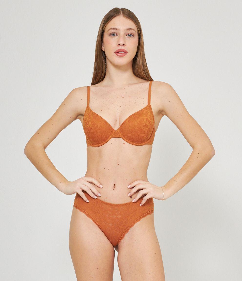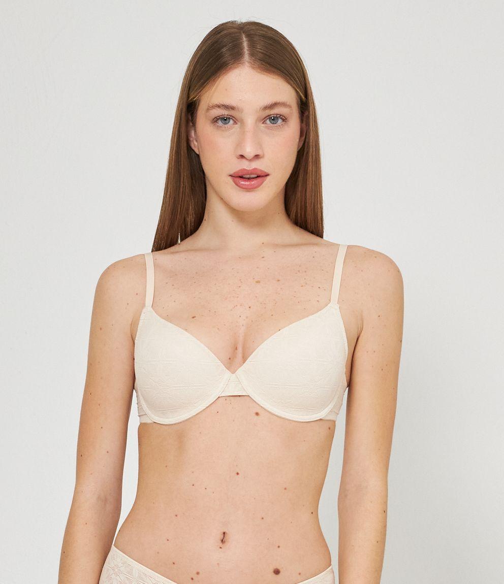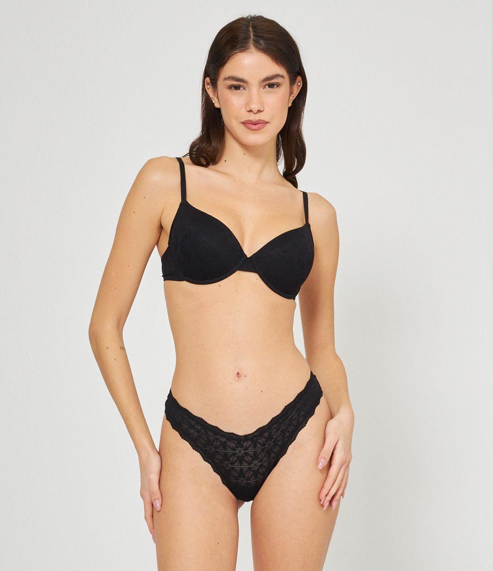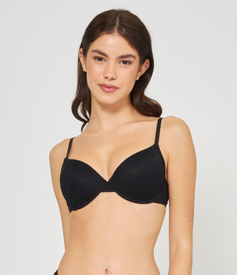 Reggiseno modello push up ricamato con coppe imbottite e ferretto. Chiusura con due gancetti regolabili in tre larghezze.