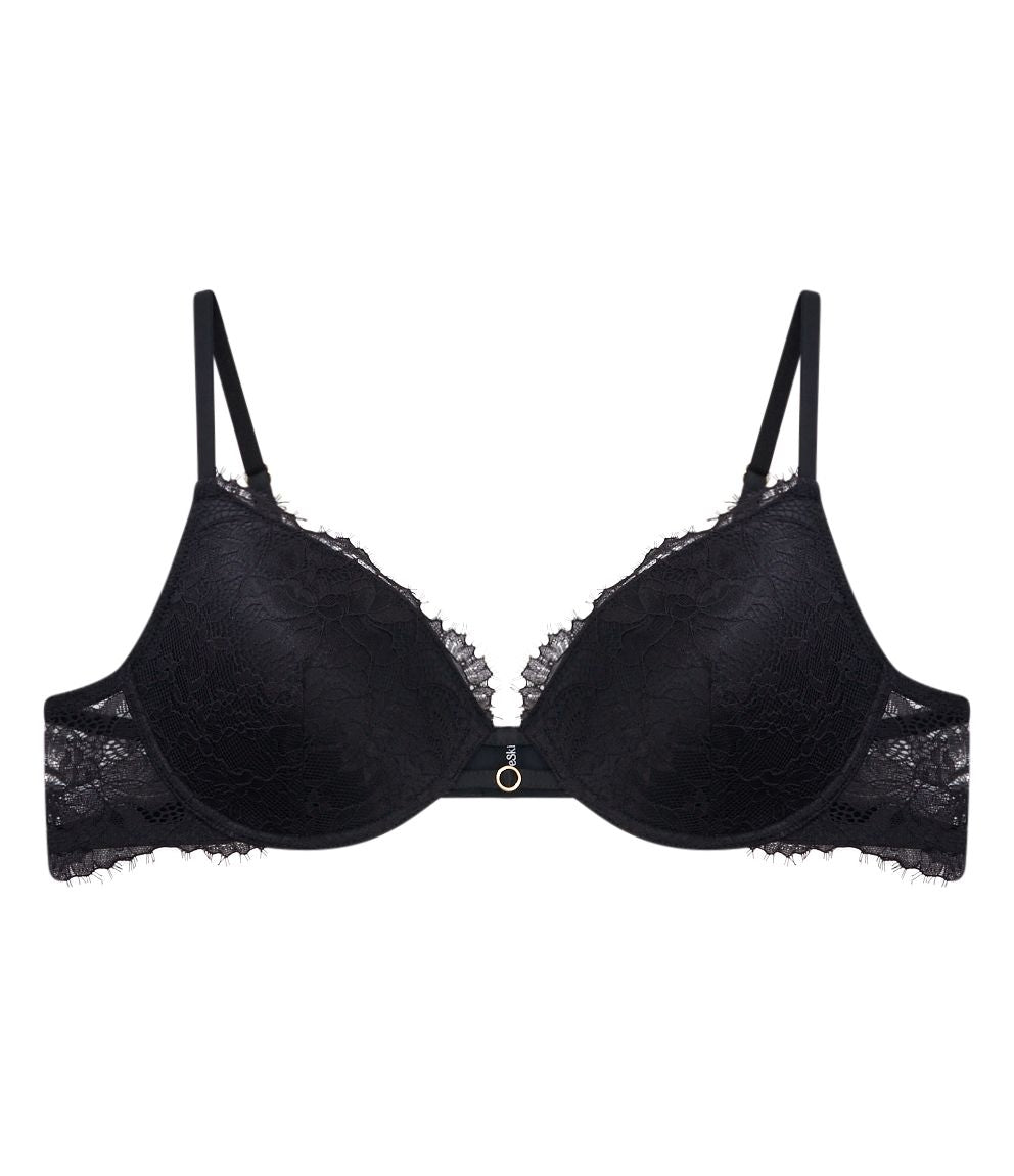Reggiseno in pizzo push up con dettagli gioiello. Spalline regolabili e chiusura con gancetti regolabili su tre larghezze.