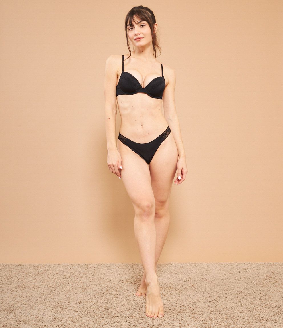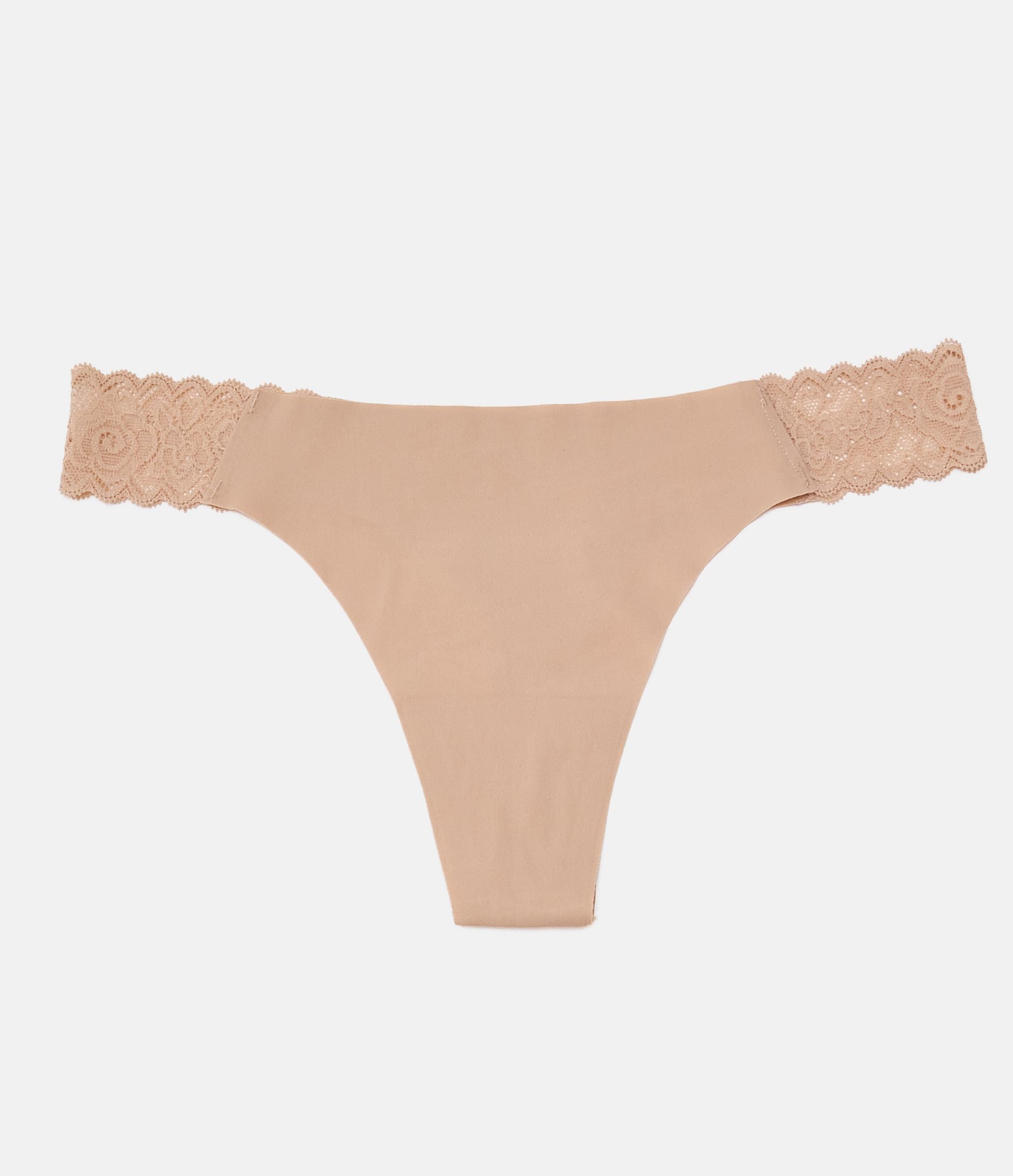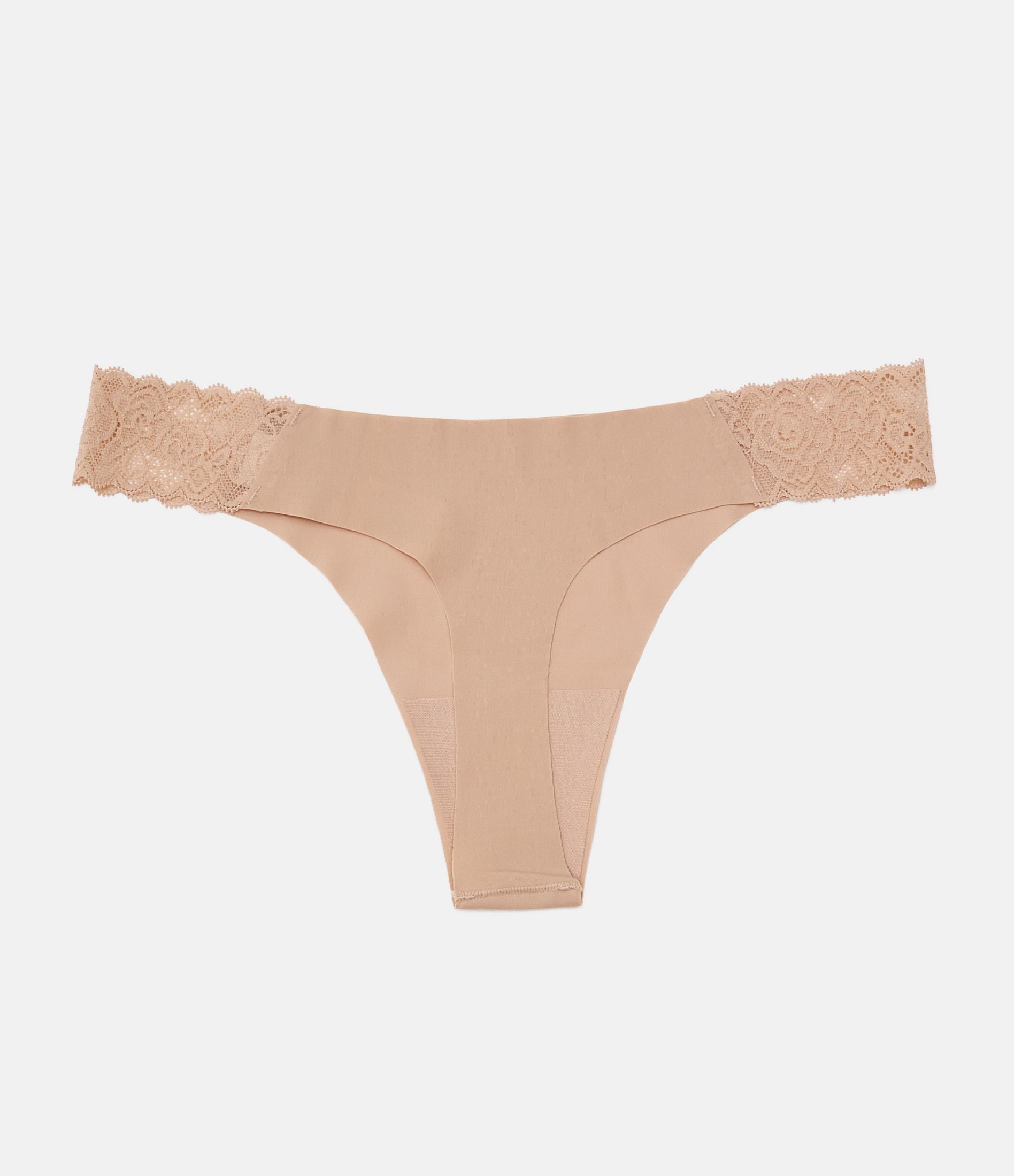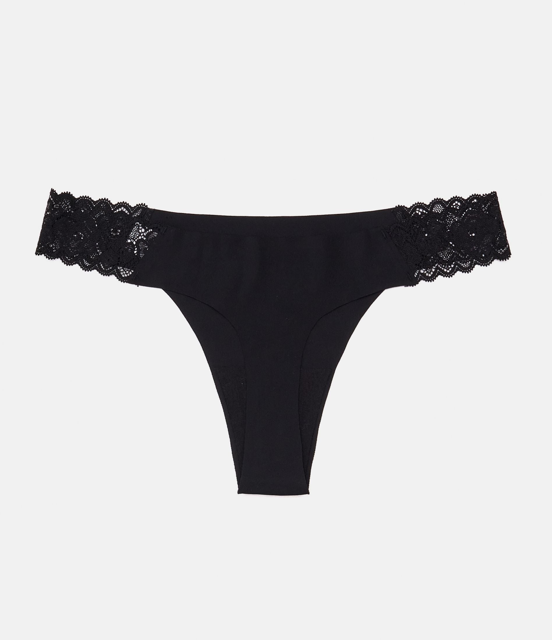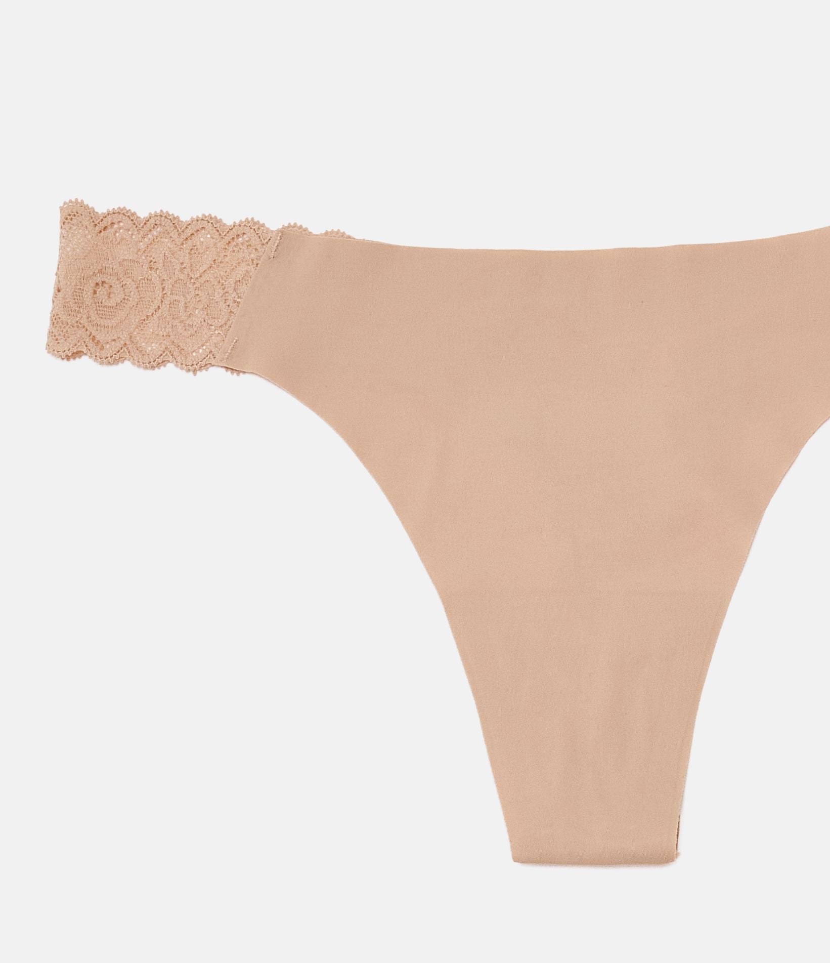 Slip  brasiliana a taglio vivo con dettagli laterali in pizzo.