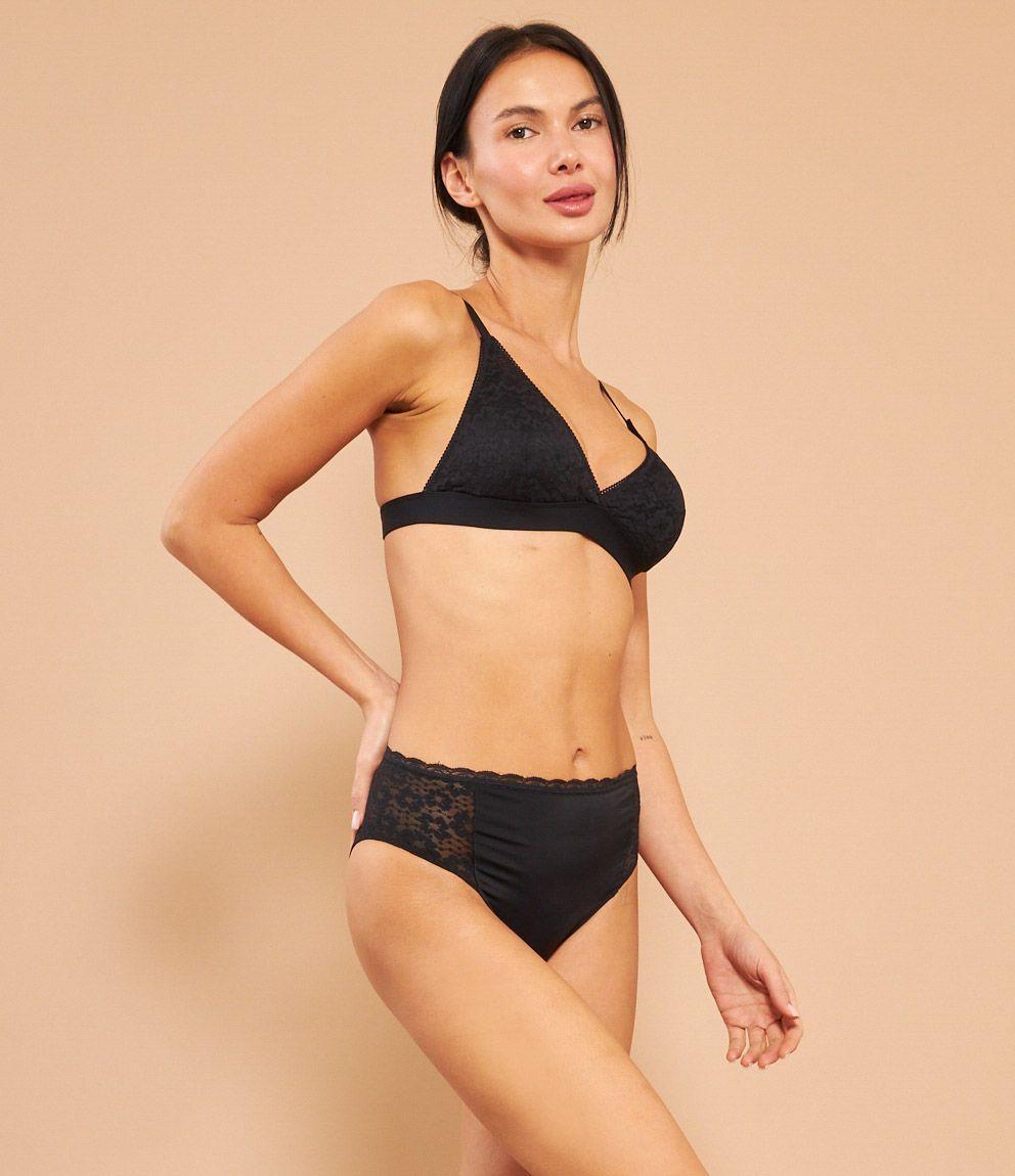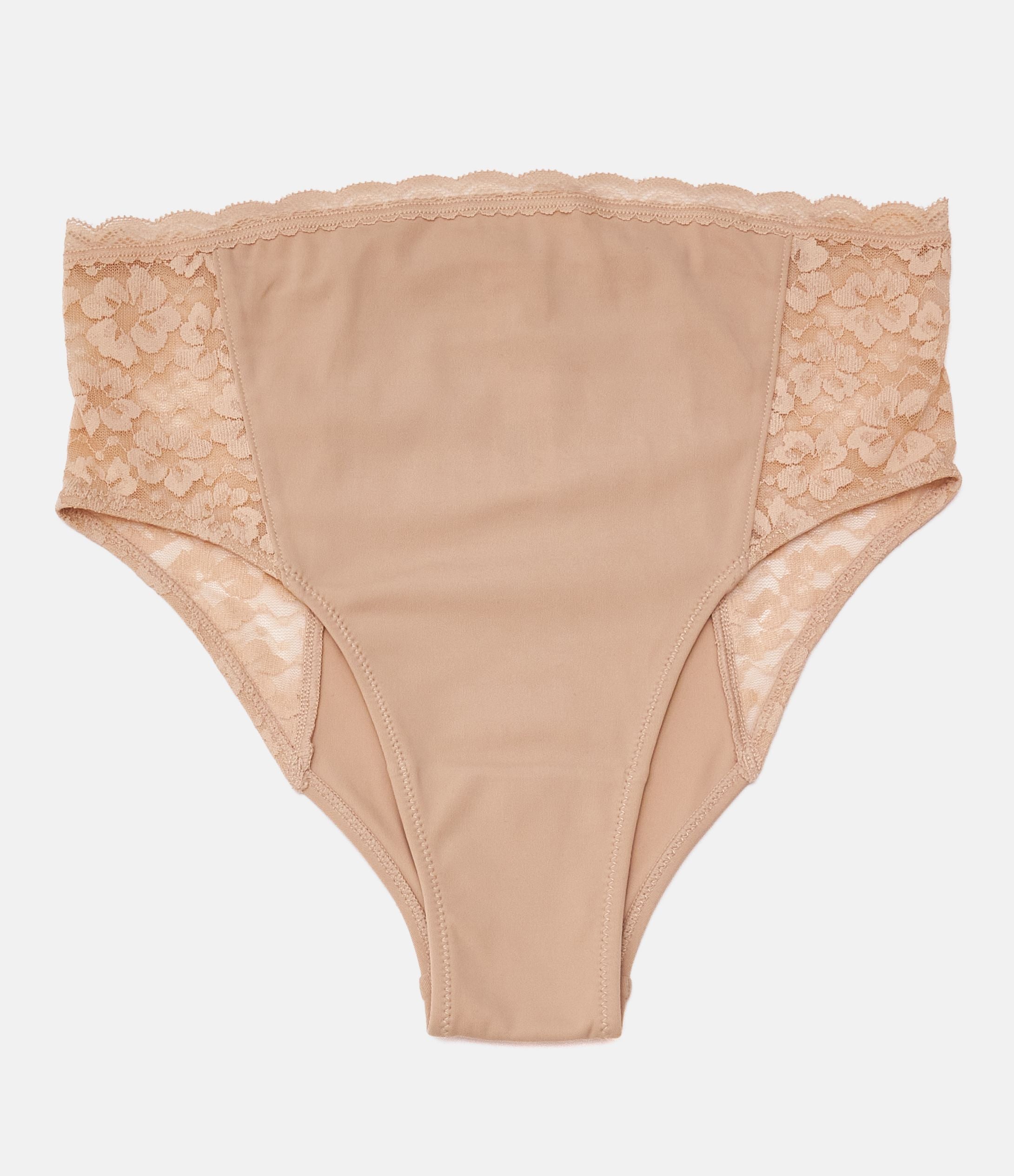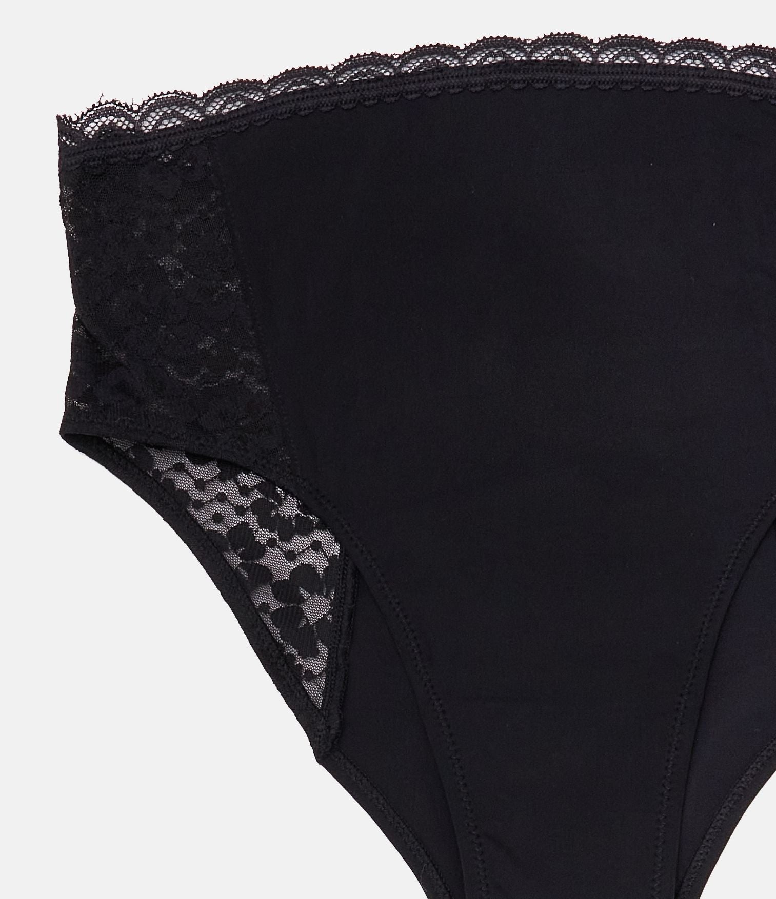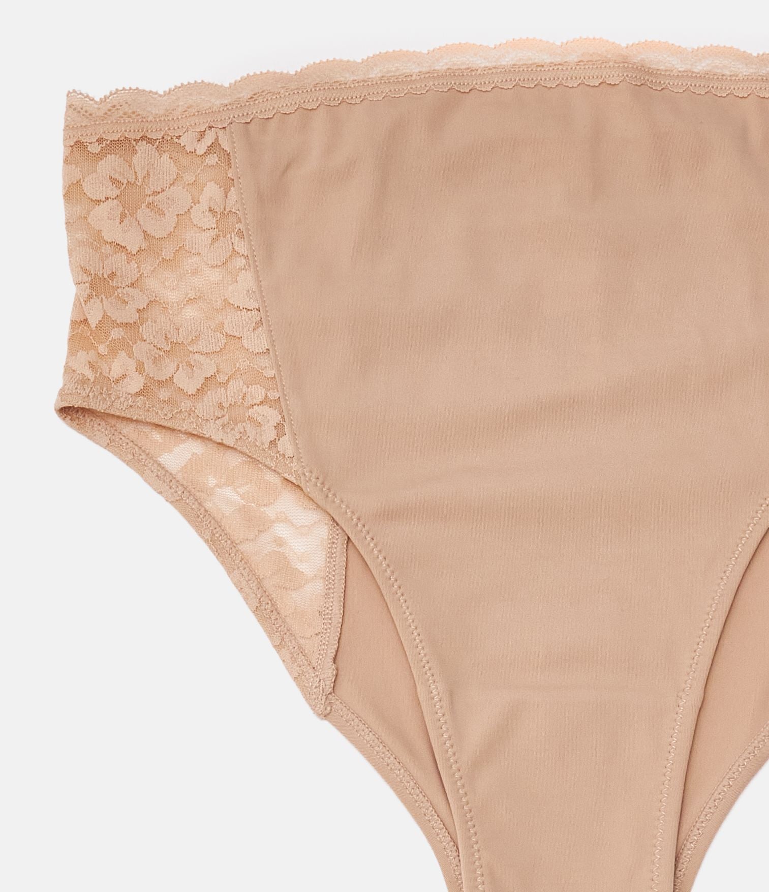 Slip a vita alta, modello sagomato con dettagli in pizzo.