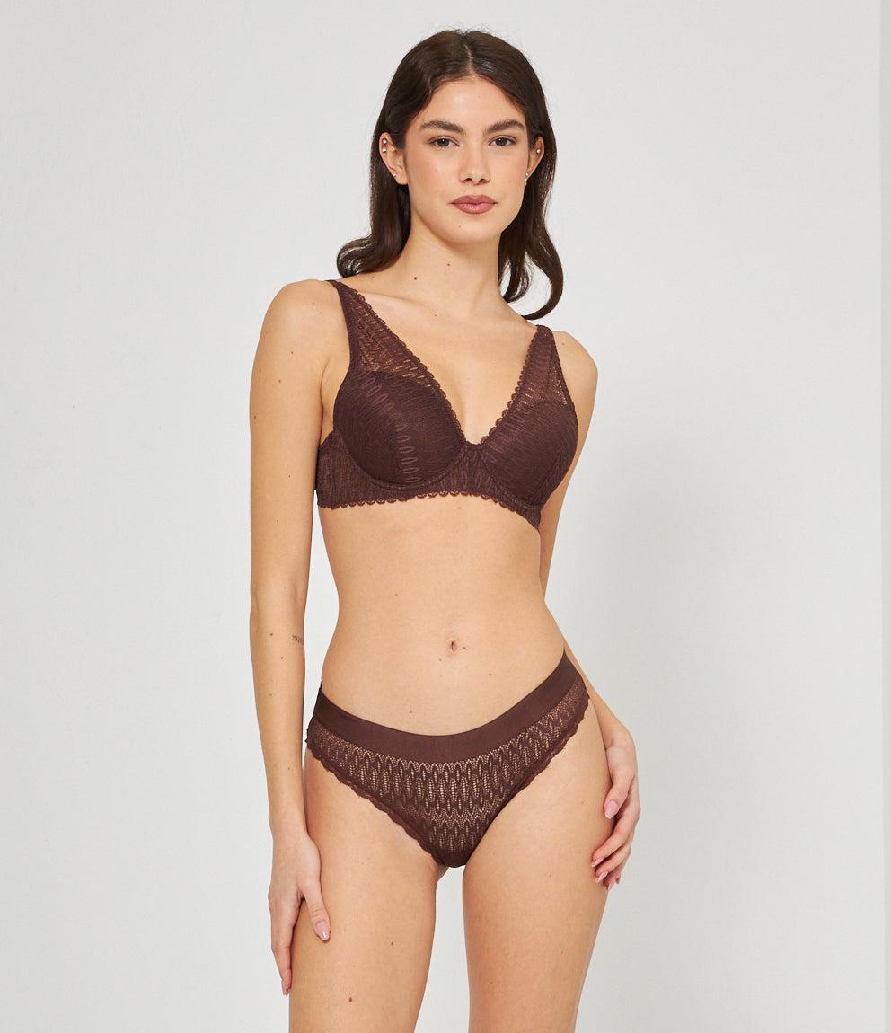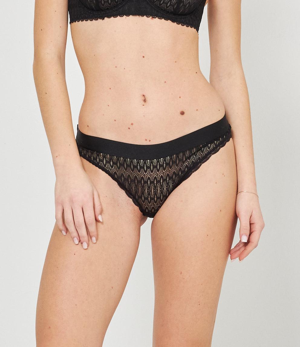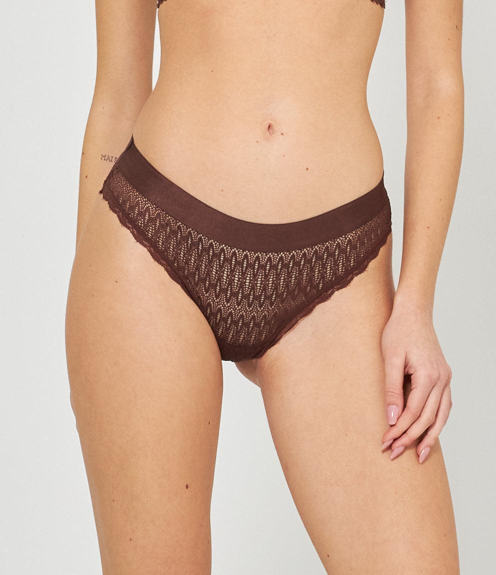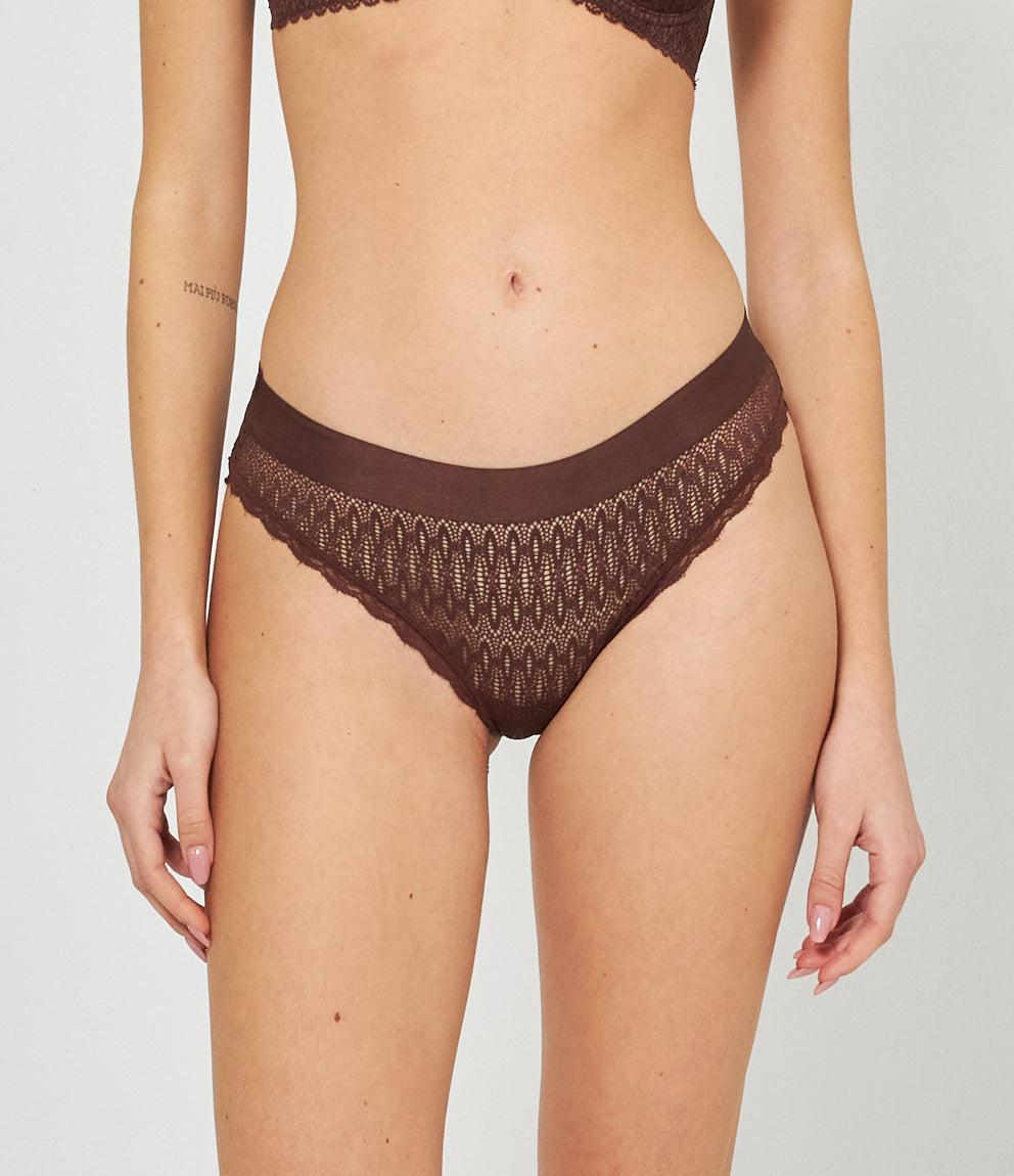 Slip modello a vita alta con ricami ed elastico in vita.