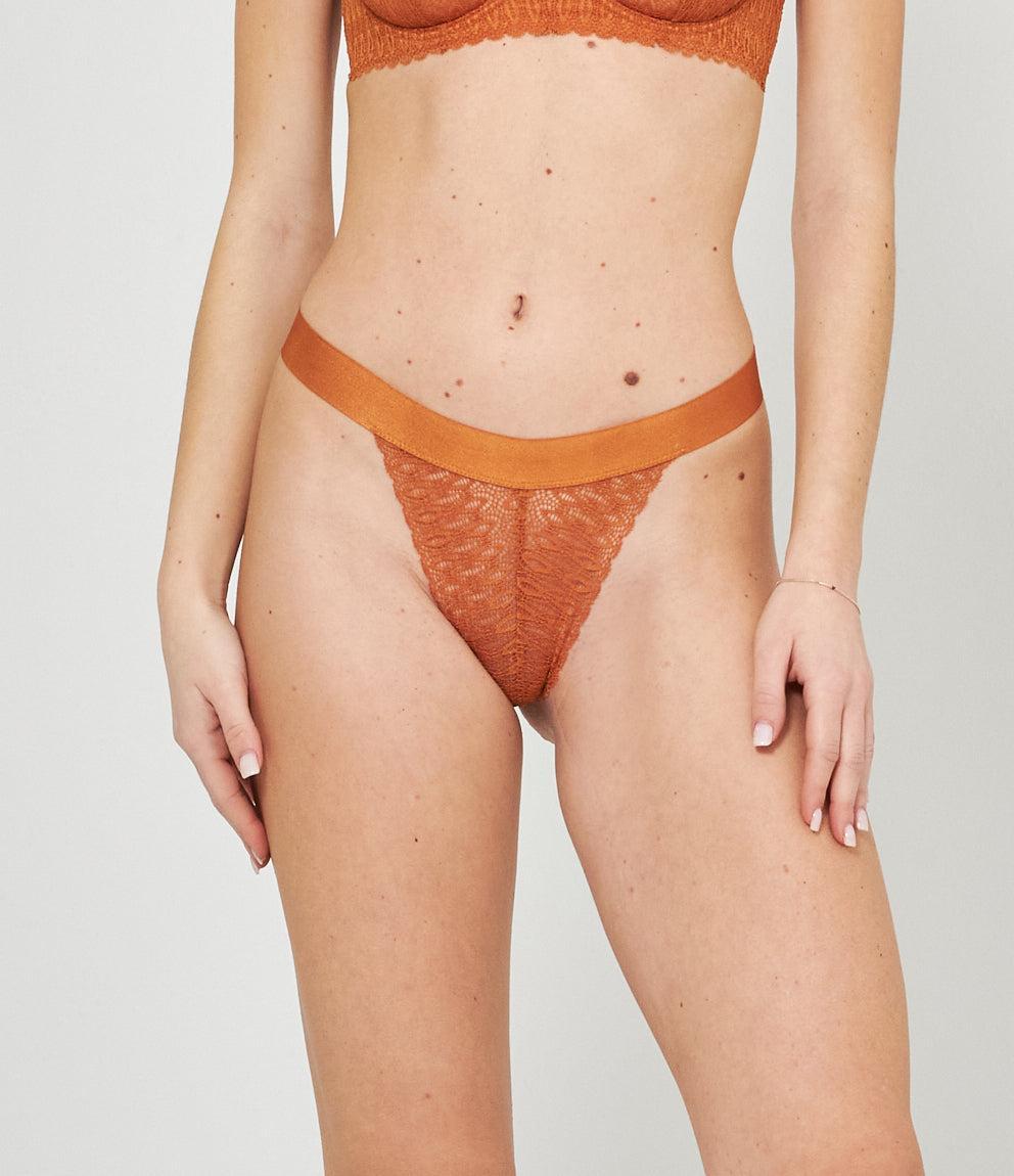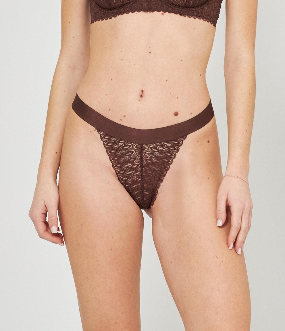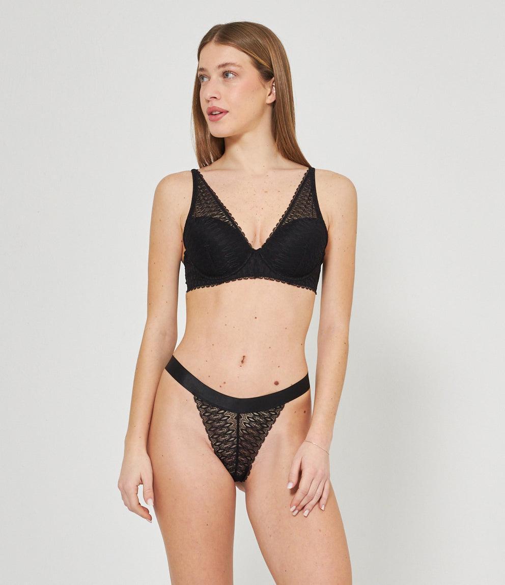 Perizoma ricamato con trasparenze ed elastico in vita.