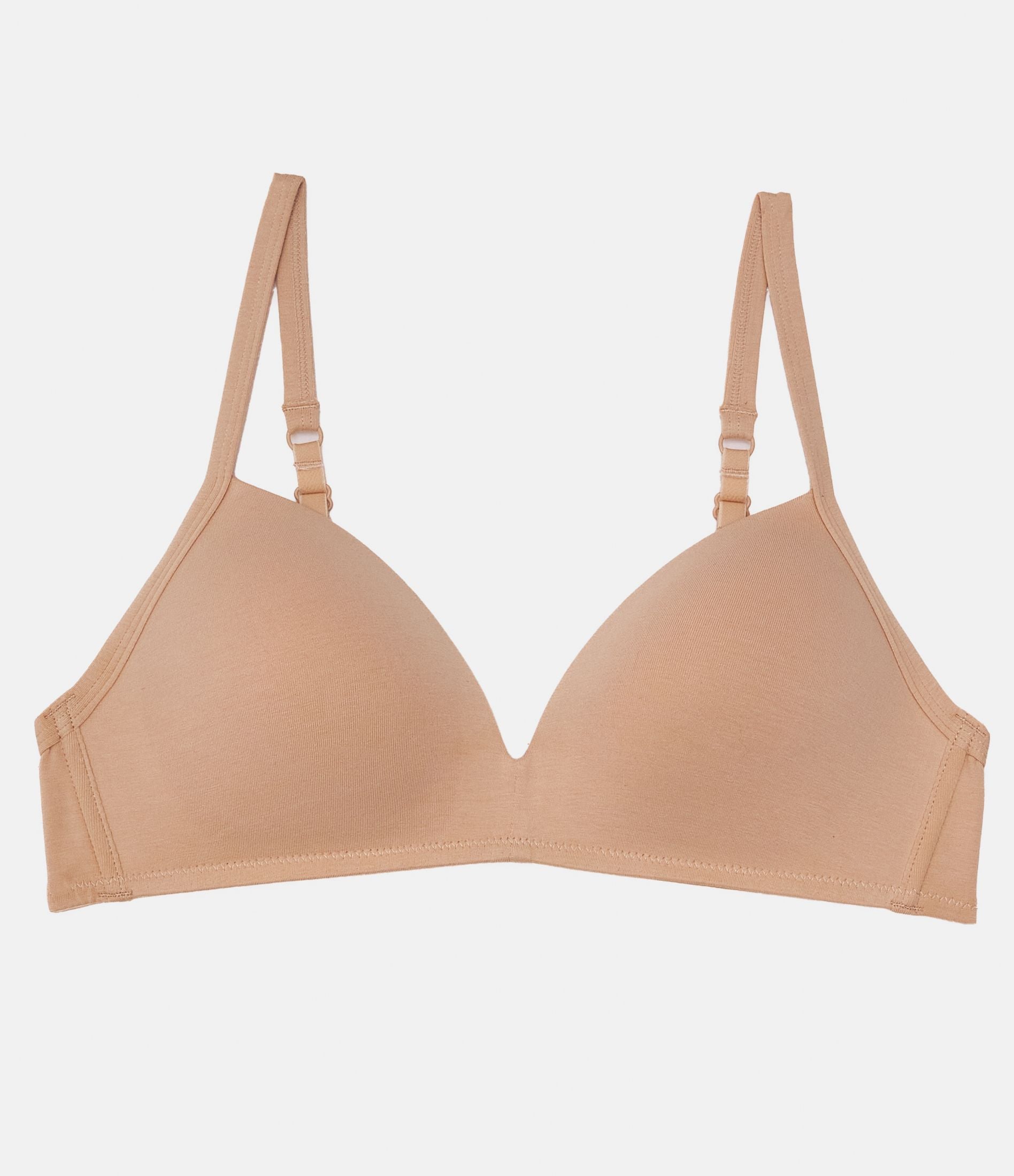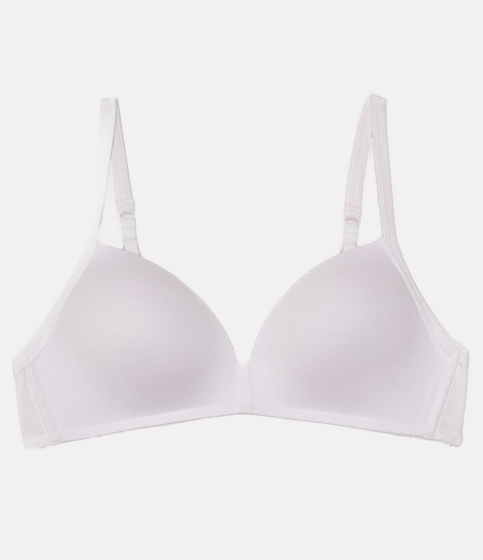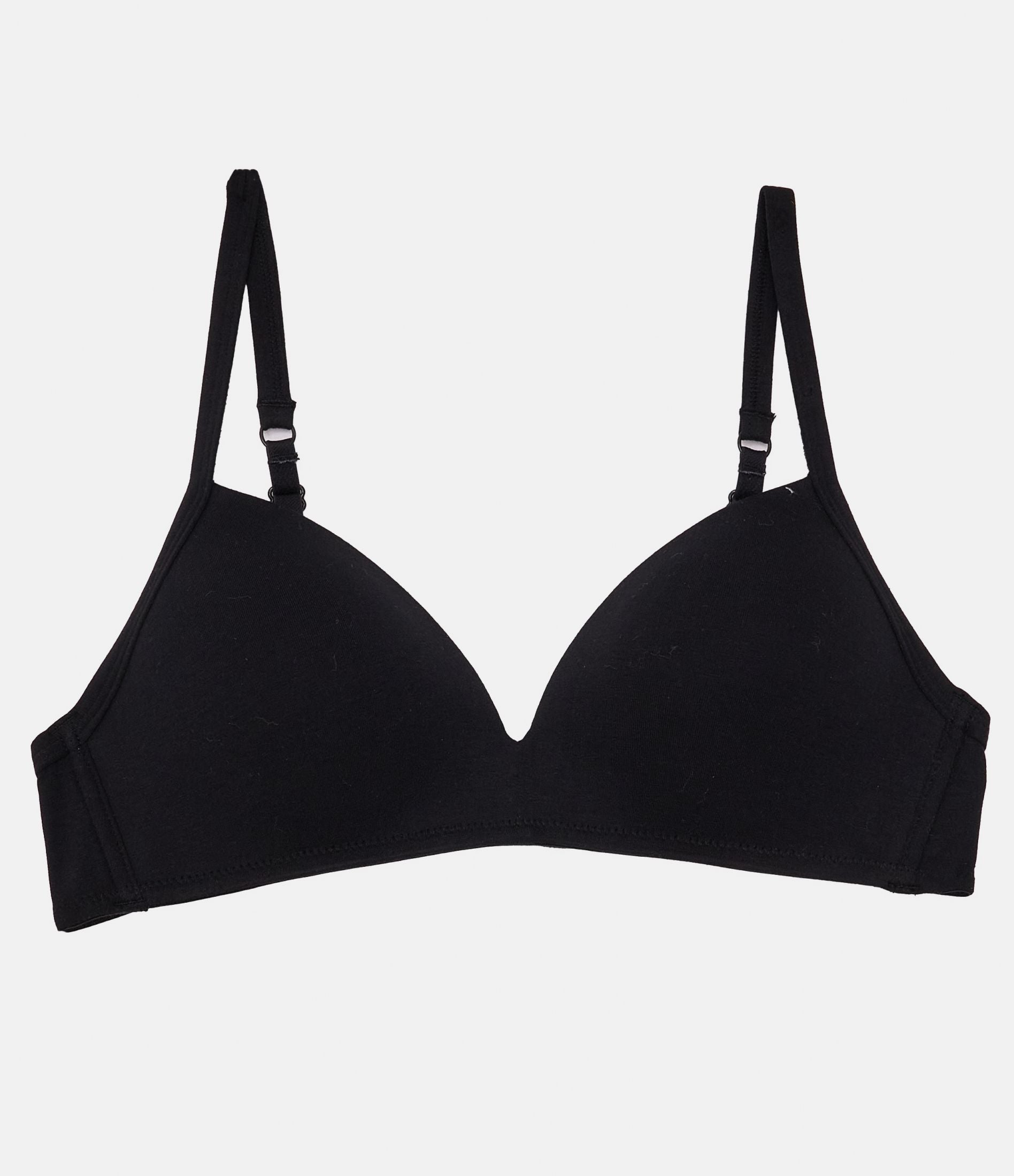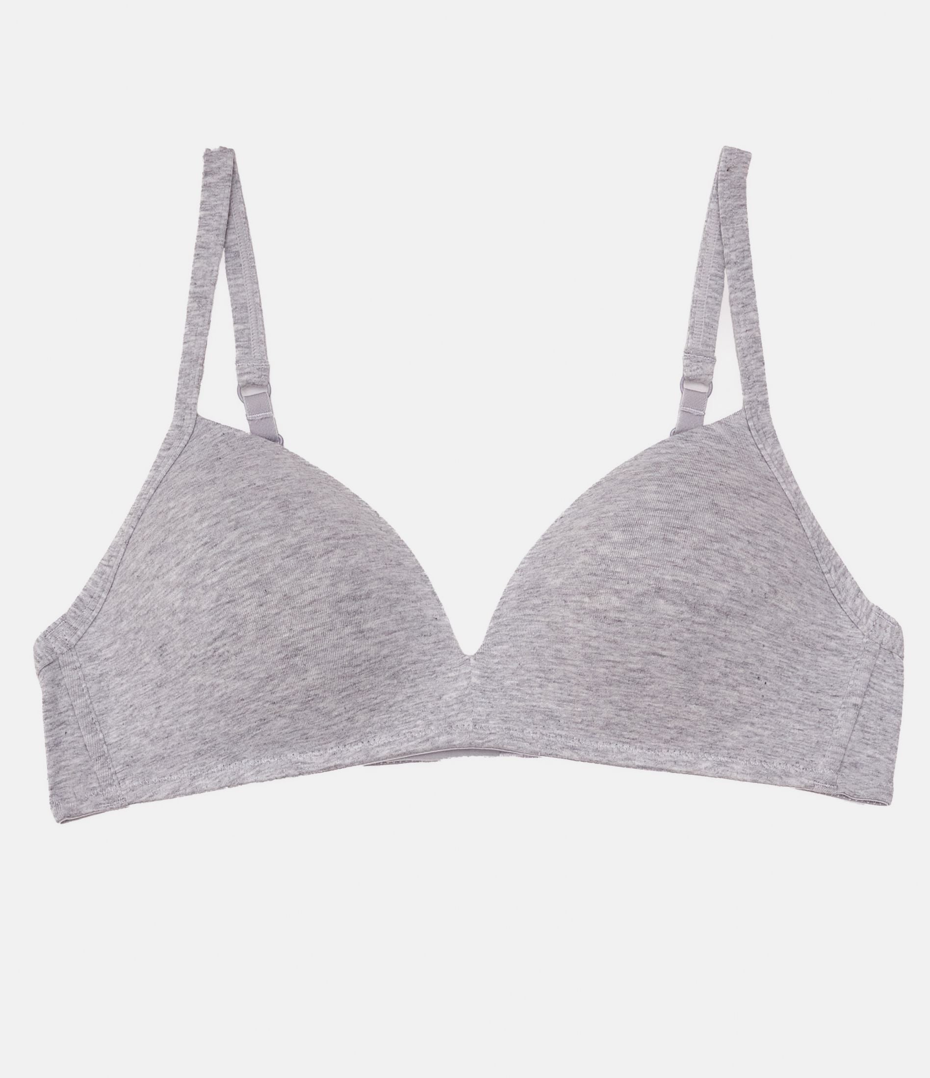 Reggiseno in cotone modello a triangolo preformato con spalline sottili regolabili e chiusura con due gancetti regolabili in tra larghezze.